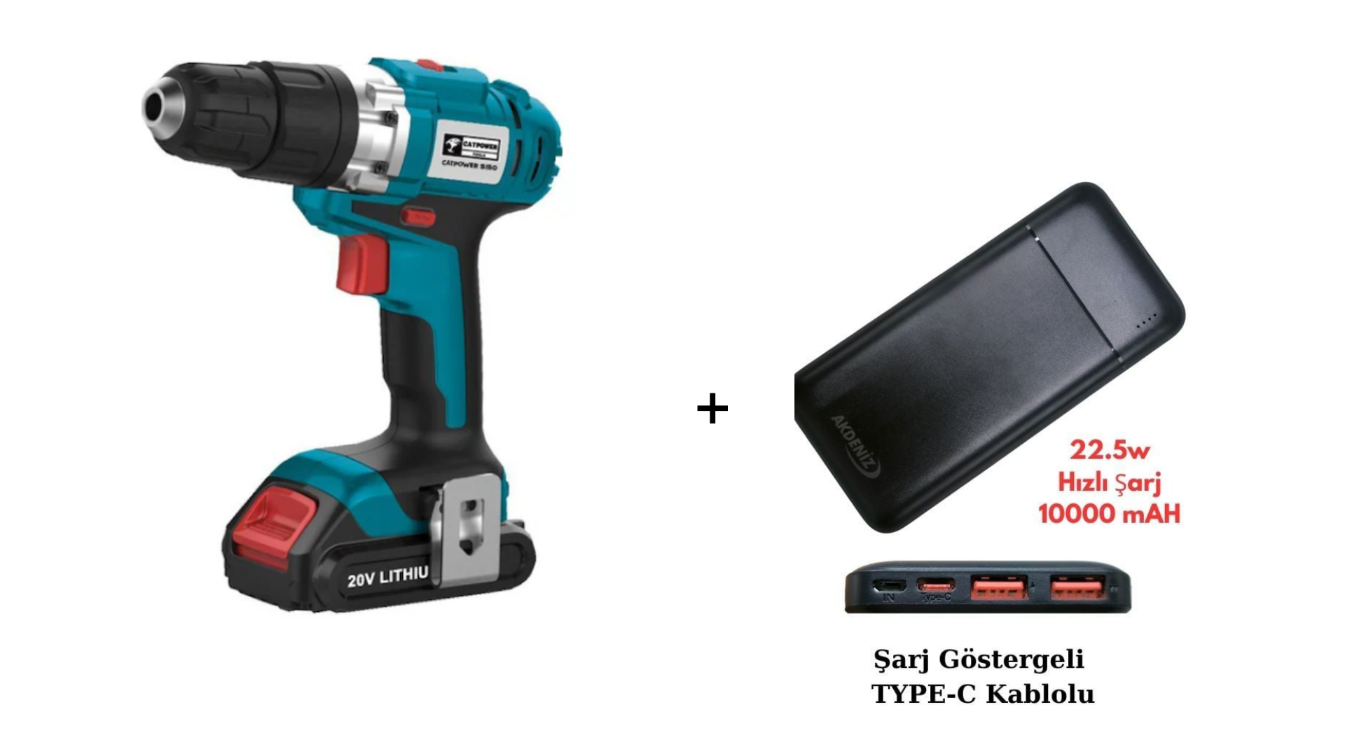 Catpower CAT5150 20 V 2.0 Ah Li-ion Çift Akülü Vidalama Makinesi + Akdeniz Taşınabilir Şarj Cihazı (Model: S125Q)