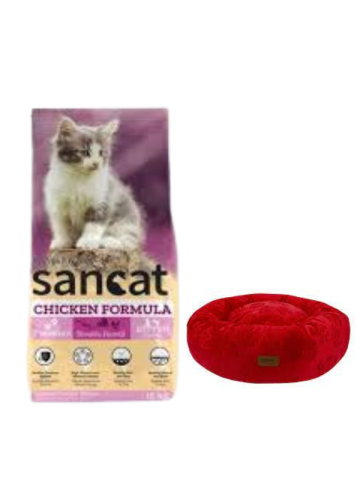 Sancat Premium Tavuklu Yavru Kedi Maması 15 Kg,Kırmızı Luxe Donut Yatak